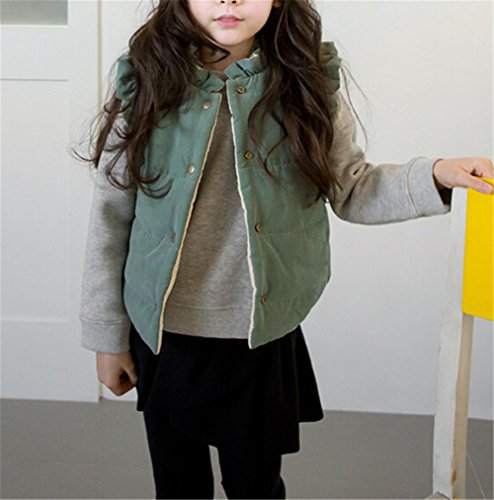 Candykids 使える オシャレ女児 コットンベスト キルティング ダウンジャケット 秋冬 子供服 キッズ アウター 中綿 厚手 暖かい (120cm, グリーン)