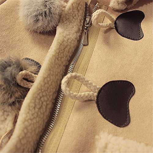 Candykids キッズ コート アウター 裏起毛 ポンポン付き 厚手 暖かい中長め 女の子 子供服 ジャケット 秋冬春 ブルゾン フィート付き (130cm, カーキ色)