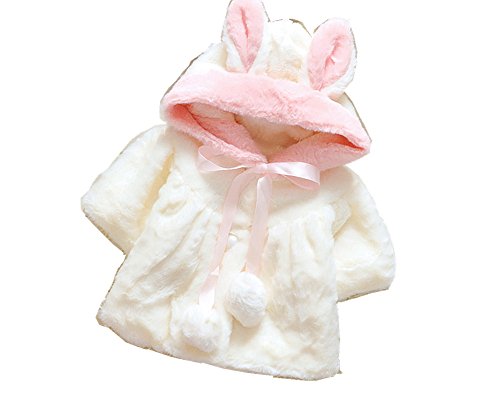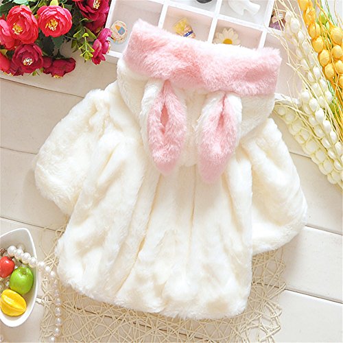 Candykids 子供の女の子の綿の冬の暖かいコート・ジャケット・アウターウェア 冬の暖かいコート可愛いウサギ (70cm, ホワイト)