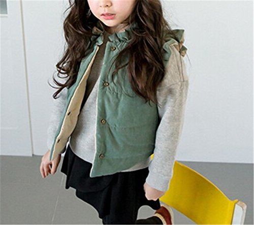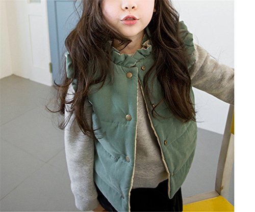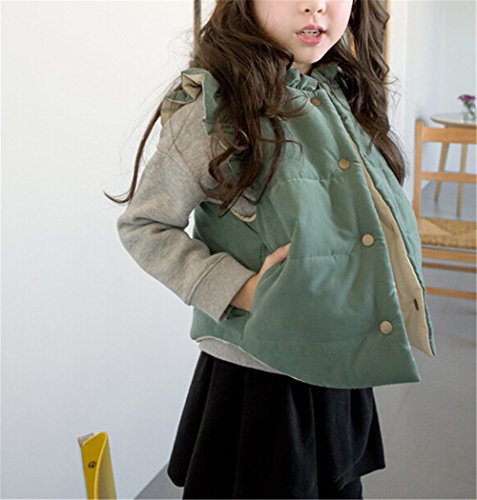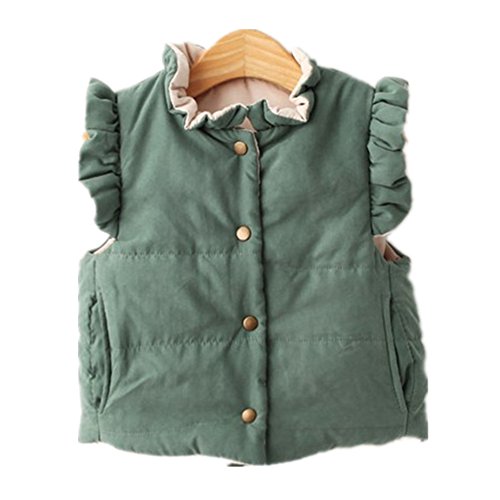 Candykids 使える オシャレ女児 コットンベスト キルティング ダウンジャケット 秋冬 子供服 キッズ アウター 中綿 厚手 暖かい (110cm, グリーン)