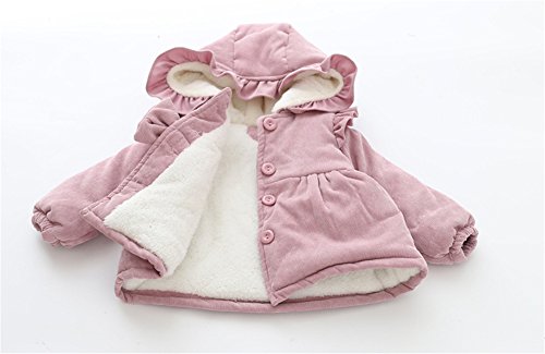 Candykids子供の女の子 綿 暖かいコート ジャケット アウターウェア ウサギ 裏起毛 ポンポン付き 厚手長袖 秋冬子供服 (73cm)