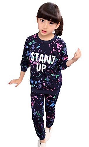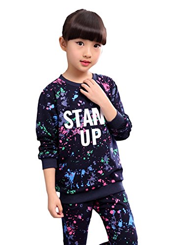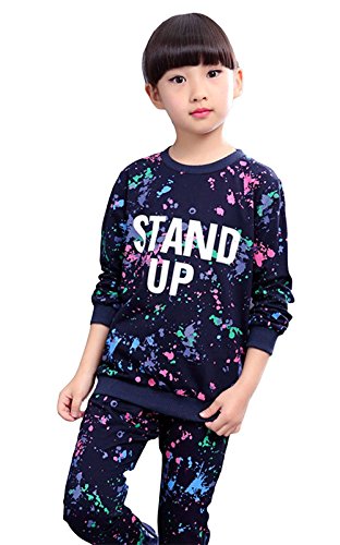 Candykids 子供服 女の子 ジャージ トップス パンツ 上下 セットアップ キッズ ガールズ スウェット パーカー 長袖 ダンス スポーツ (150cm, ネイビー)