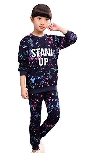 Candykids 子供服 女の子 ジャージ トップス パンツ 上下 セットアップ キッズ ガールズ スウェット パーカー 長袖 ダンス スポーツ (130cm, ネイビー)