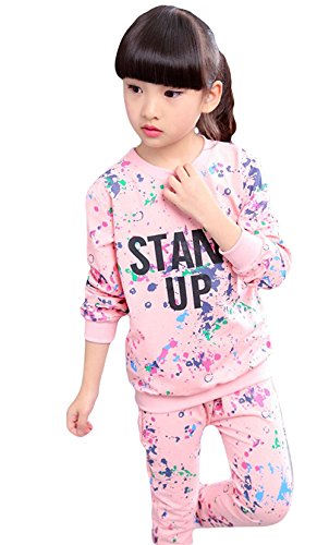 Candykids 子供服 女の子 ジャージ トップス パンツ 上下 セットアップ キッズ ガールズ スウェット パーカー 長袖 ダンス スポーツ (120cm, ピンク)