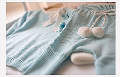 Candykids かわいい カーディガン リボン ガーリー セーター きもちいい生地 きれいめ ちょっと羽織る ニット 春 夏 秋 冬 お出かけ セーター パンツセット (95CM, ブルー)