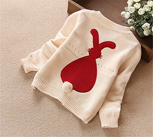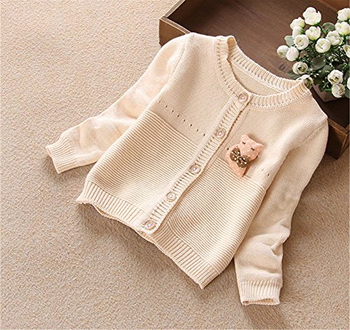 Candykids 女児 女の子 子供服 長袖 ニットセーター ニット ウェア シャツ トップ セーター カーデ 春秋 可愛い (110cm, クリーム色)
