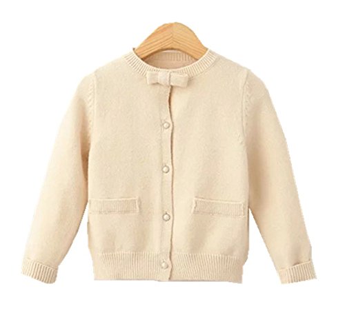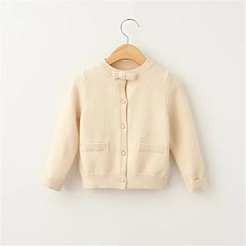 Candykids キッズ 子供服 女の子 女児 ガールズ 長袖 ニット セーター かわいい おしゃれ着 お出かけ ニット コート ジャケット カーディガン 長袖 女の子 子供服 (120cm, クリーム色)