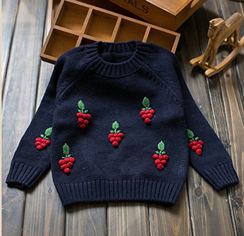 Candykids 女児 女の子 子供服 長袖 ニットセーター クルーネック 毛糸セーター キッズ こども 可愛い蒲萄柄 秋冬着 通園 結婚式 発表会 お出かけ (120CM, ネイビー)