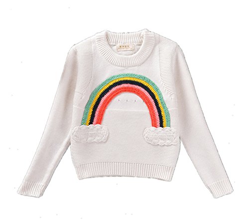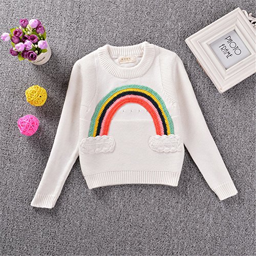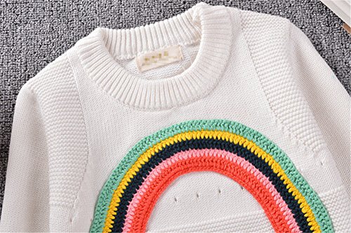 Candykids 児 女の子 子供服 長袖 ニットセーター クルーネック 毛糸セーター キッズ レインボー こども 秋冬着 通園 結婚式 発表会 お出かけ (100cm)