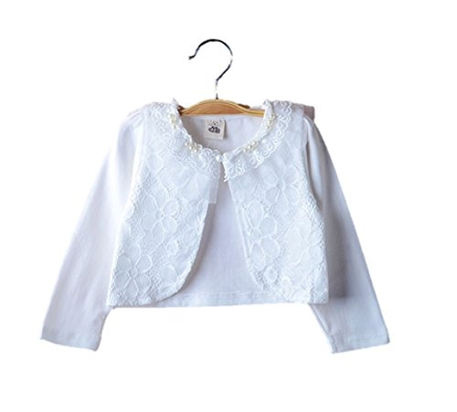 Candykids ボレロ カーディガン 子供 女の子 用 レース パール ピンク 白 キッズ 発表会入園 結婚 式 パーティー 等に 入園式 結婚式 パーティー (130cm, ホワイト)