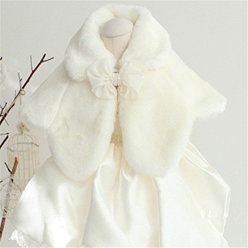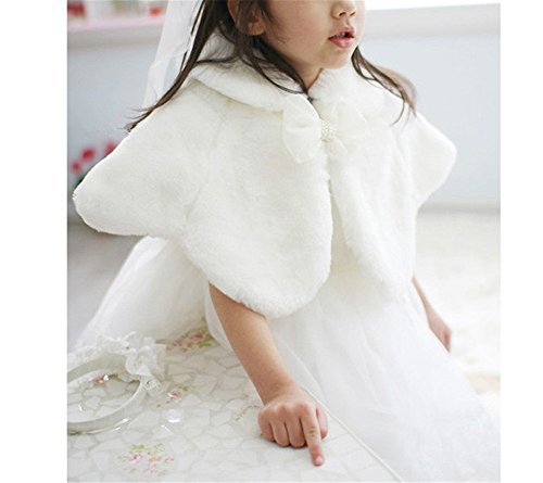 Candykids 子供ケープ 子供 ドレス ポンチョ ボレロ 白 ホワイト リボン 子供ケープ 子供ドレス ポンチョ ボレロ 白 ホワイト ピンク (110cm, ホワイト)