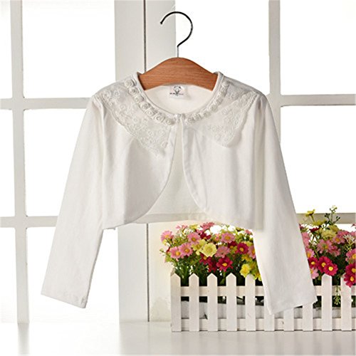 Candykids 子供 用 レース ボレロ コサージュ 付き キッズ フォーマル ドレス 発表会 入園式 結婚式 パーティー (110CM, ホワイト)