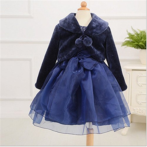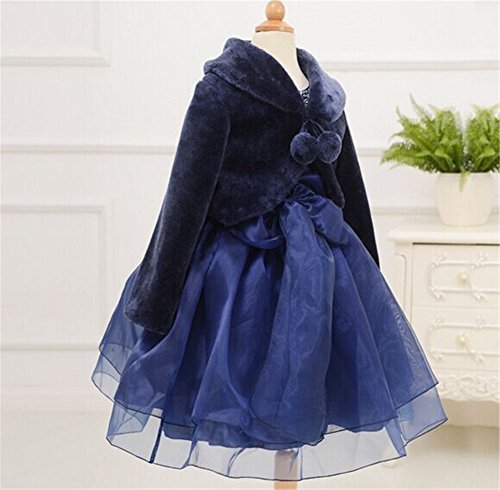 Candykids ポンポンリボン ファー ボレロ ポンチョ カーディガン ケープ フォーマル ガールズ キッズ 子供 結婚式 七五三 発表会 披露宴 パーティ (S(1-3歳), ブルー)