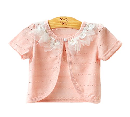 Candykids子供服 ボレロ カーディガンキッズポンチョ半袖 ボレロ 結婚式 七五三 発表会 披露宴 (100cm, ピンク2)