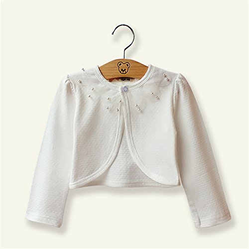 Candykids ボレロ カーディガン 子供 女の子 用 レース パール ピンク 白 キッズ 発表会入園 結婚 式 パーティー 等に 入園式 結婚式 パーティー (140cm, ホワイト1)