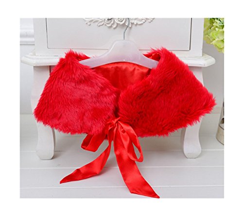 Candykids 子供ケープ 子供 ドレス ポンチョ ボレロ リボン 子供ケープ ふわふわ フォーマル 子供 ドレス ポンチョ ボレロ カーディガン ケープ フォーマル ガールズ キッズ 子供 結婚式 七五三 発表会 披露宴 パーティ (レッド)