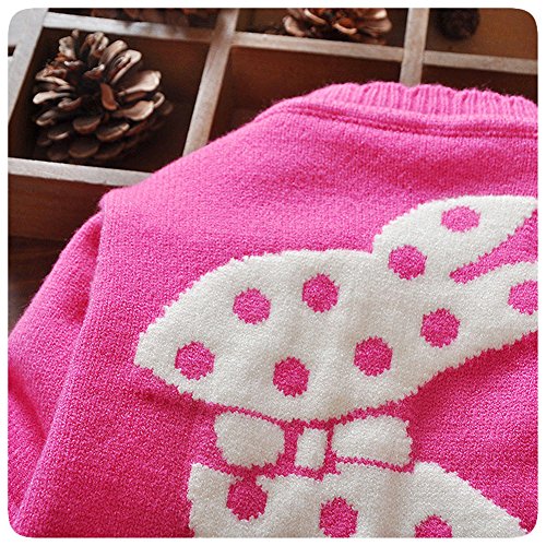 Candykids 女児 女の子 子供服 長袖 ニットセーター ニット ウェア シャツ トップ セーター カーデ 春秋 可愛い お出かけ ニット コート ジャケット カーディガン 長袖 女の子 子供服 (73cm, バラ色)