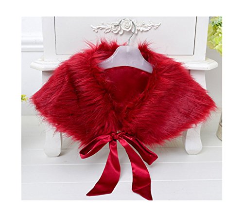 Candykids 子供ケープ 子供 ドレス ポンチョ ボレロ リボン 子供ケープ ふわふわ フォーマル 子供 ドレス ポンチョ ボレロ カーディガン ケープ フォーマル ガールズ キッズ 子供 結婚式 七五三 発表会 披露宴 パーティ (ワインレッド)