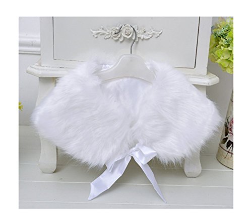 Candykids 子供ケープ 子供 ドレス ポンチョ ボレロ リボン 子供ケープ ふわふわ フォーマル 子供 ドレス ポンチョ ボレロ カーディガン ケープ フォーマル ガールズ キッズ 子供 結婚式 七五三 発表会 披露宴 パーティ (ホワイト)