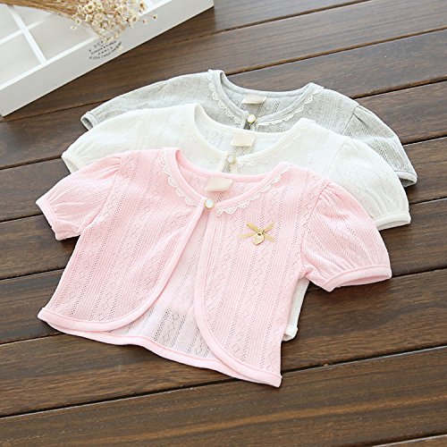 Candykids ガールズ女の子 ボレロ カーディガン 半袖 子供 女の子 用 ホワイト ピンク 薄手 柔らか カーデ 女の子 フォーマルキッズ フォーマル ドレス 可愛い発表会 入園式 結婚式 パーティー (90cm, ピンク)