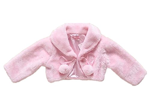 Candykidsポンポンリボン ファー ボレロ ポンチョ カーディガン ケープ フォーマル ガールズ キッズ 子供 結婚式 七五三 発表会 披露宴 パーティ (4#, ピンク)