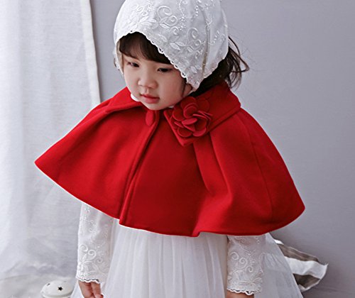 Candykids 子供ケープ 子供 ドレス ポンチョ ボレロ 白 ホワイト リボン (70cm, レッド)
