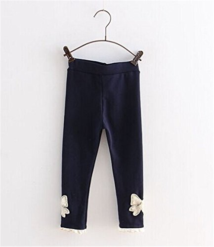 Candykids レギンス コットン 綿 パンツ 子供 服 キッズ レギンス 子ども服 女の子 ストレッチ 伸縮性 ガールズ 可愛いリボン (110cm, ネイビー)