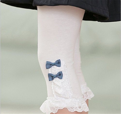 candykids キュート 七分丈 レギンス 100 ~ 140cm まで リボン付き キッズ ガールズ タイツ スキニー 薄手 夏子供レギンス (130cm, ホワイト)