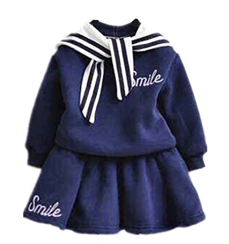 Candykidsセットアップ 女の子 子供服 女の子 長袖 ワンピース フレア スカート キッズワンピース キッズ ワンピース 入学 入園 子供服 キッズ 女の子 スカート+服 (100cm, ネイビー)