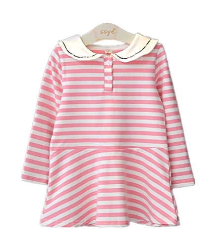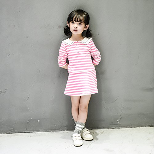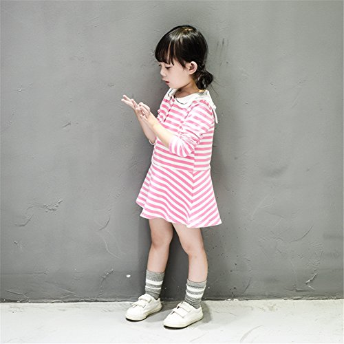 Candykids かわいい おしゃれ な ボーダー ワンピ チュール スカート お出かけ 通園 通学 普段着 長袖 女の子 キッズ 子供服 (120cm, ピンク)