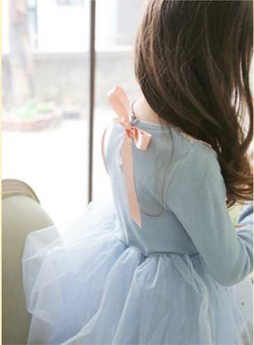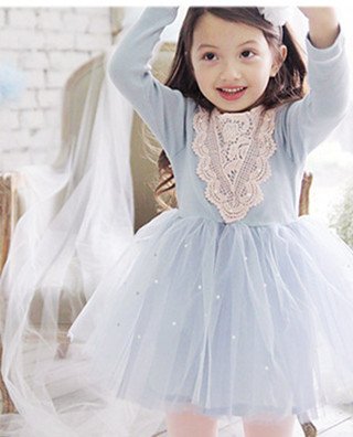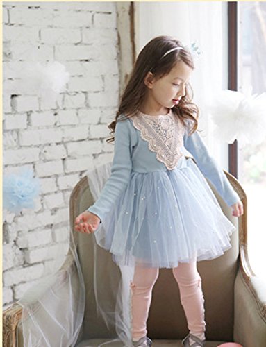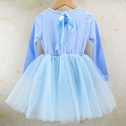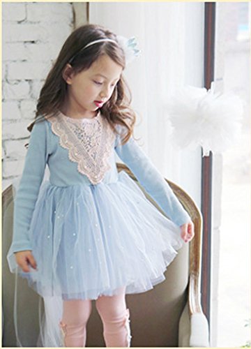 Candykids 長袖ワンピース キッズ ベビー 子供 女の子 ガールズ レースワンピース ふわふわ 発表会 結婚式 七五三 ティアラ チュチュ パニエ 記念 撮影 誕生日 バースデー セレモニー 結婚式 (130cm, ライトブルー)