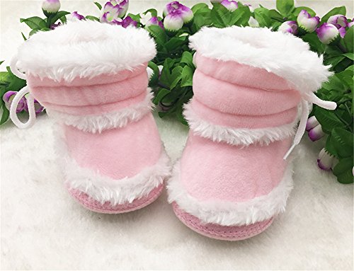 Candykids キッズ ベビー 暖か カジュアル ムートン ブーツ / 可愛い ボタン 付 つま先 ゆったり 履き口 ボア / 秋 冬 春 用 靴 ベビームートンブーツ 靴 (内寸12.5cm, ピンク)