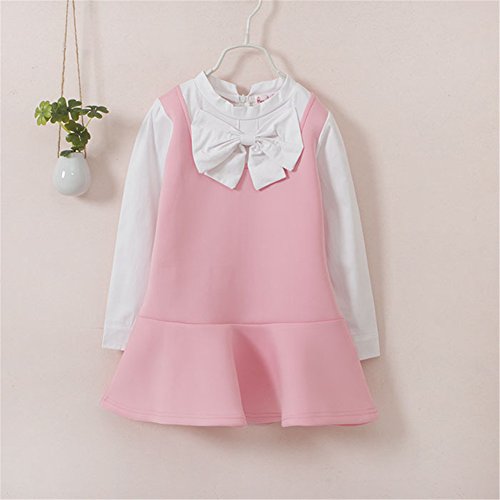 Candykids キッズ 女の子 女児 長袖 ワンピース フォーマル 丸襟 フレア スカート 発表会 結婚式 入学式 入園式 卒園式 卒業式 入園式・卒園式・お祝い フォーマルドレス ベビー 結婚式 発表会 入学式 (100cm, ピンク)