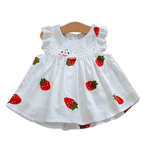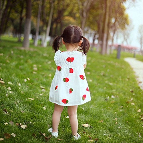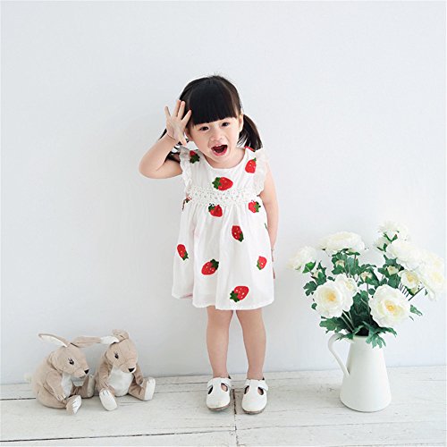 Candykids 女の子ドレス ガールズワンピース 夏サマー 可愛いベビー 子供女の子ドレス ガールズワンピース 夏サマー 可愛いベビーブルーホワイト レースドレス プリンセスドレス (95cm, 苺柄)