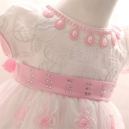 Candykids ベビードレス ベビーデイジー 結婚式 セレモニードレス フォーマルドレス 子供服 女の子 赤ちゃん お宮参り ティアードスカート ベビードレス フォーマルドレス (90cm, ピンク2)