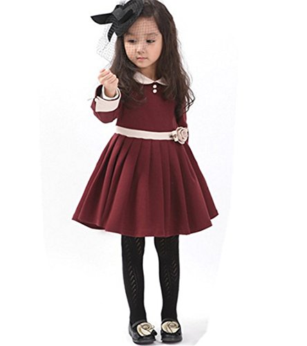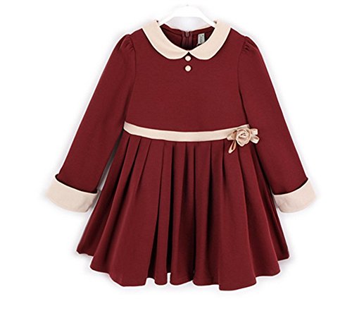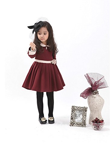 Candykids 女の子 フォーマル ドレス ワンピース 子供服 ガールズ ワンピース チュニック リボン あったか 子供 キッズ 長袖 女の子 ガールズ ワンピース (120cm, レッド)