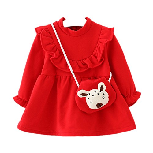 Candykids 女の子 フォーマル ドレス ワンピース 子供服 ガールズ ワンピース チュニック リボン あったか 子供 キッズ 長袖 女の子 ガールズ ワンピース (70cm, レッド)