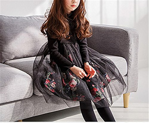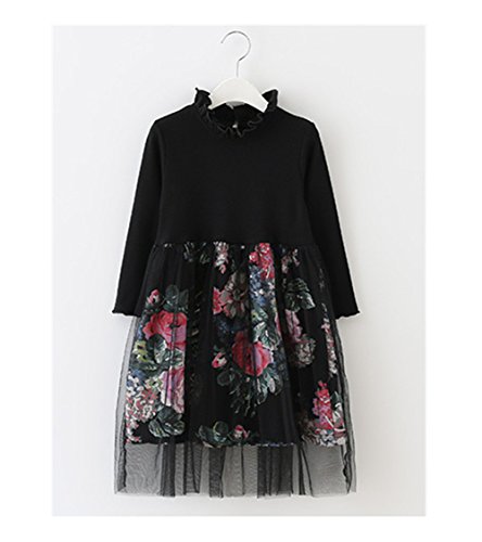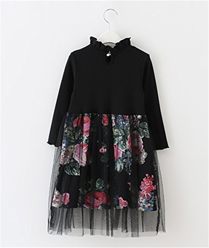 Candykids ガールズ キッズ 女児 女の子 長袖 ワンピース フォーマル 女の子/ 卒業式/スーツ/ピアノ/結婚式/面接/七五三/入学式/ お姫様 ドレス お出かけ 結婚式 (130cm, ブラック)