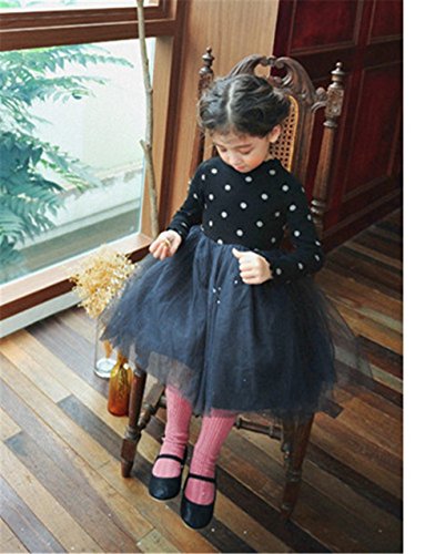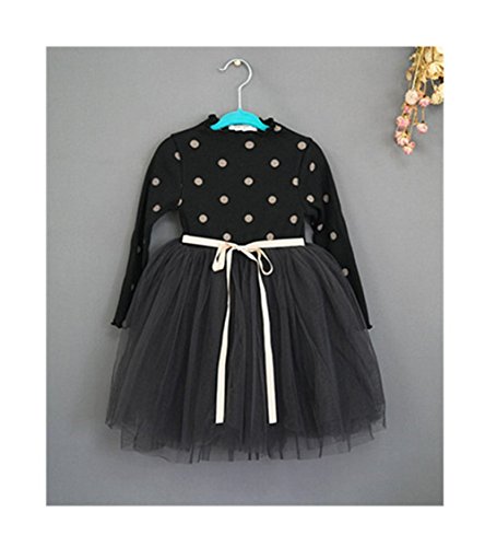 Candykids リボンワンピース/子ども/フォーマル/ホワイト/女の子 ジュニア/発表会/ドレス/dress/卒業式/スーツ/ピアノ/結婚式/面接/七五三/入学式/ ドッド柄 (130cm, ブラック)