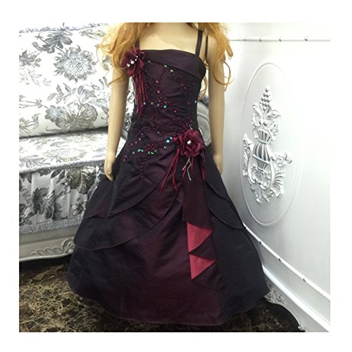 Candykids 女の子フォーマルドレス 子供ワンピース ガールズフォーマル キッズドレス ピアノ 演奏会 発表会 結婚式ドレス ワンピース 入園式ワンピース コンサート 七五三 卒業式 花 可愛い (130cm, ワインレッド)