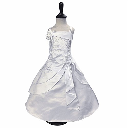 Candykids 女の子フォーマルドレス 子供ワンピース ガールズフォーマル キッズドレス ピアノ 演奏会 発表会 結婚式ドレス ワンピース 入園式ワンピース コンサート 七五三 卒業式 花 可愛い (120cm, ホワイト)