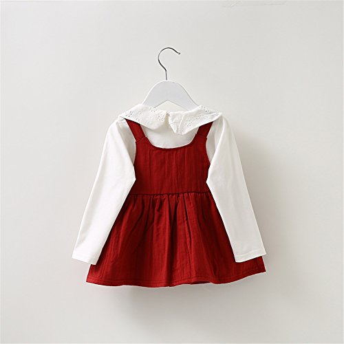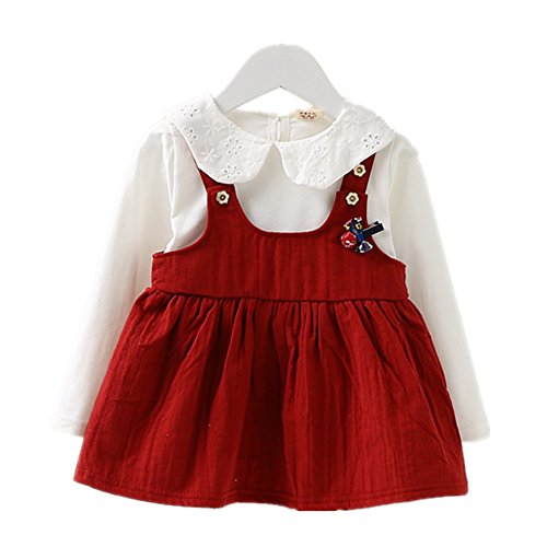 Candykids ッズ 長袖 ワンピース 女の子 おしゃれ かわいい 子どもドレス 結婚式 発表会 七五三 子供ワンピース フォーマル 女の子 女児 ジュニア 遊戯会 日常服 子供フォーマル 誕生日 バースデー セレモニー 結婚式 (80cm, レッド)