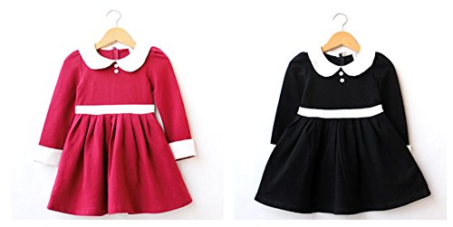 Candykids 女の子 フォーマル ドレス ワンピース 子供服 ガールズ ワンピース チュニック リボン あったか 子供 キッズ 長袖 女の子 ガールズ ワンピース (100cm, レッド)