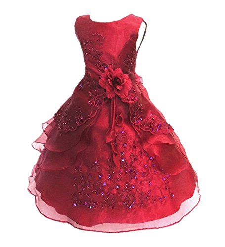 Candykids こどもドレス 女の子 スパンコール 子供 ドレス ワンピース フォーマル キッズ ベビー エレガント 結婚式 演奏会 ピアノ 発表会 女の子 ファション入園式ワンピース コンサート 七五三 卒業式 花 (120cm, レッド2)