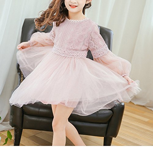Candykids ガールズ キッズ 女児 女の子 長袖 ワンピース フォーマル 女の子/ 卒業式/スーツ/ピアノ/結婚式/面接/七五三/入学式/ お姫様 ドレス お出かけ 結婚式 (130cm, ピンク)