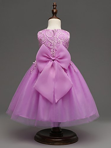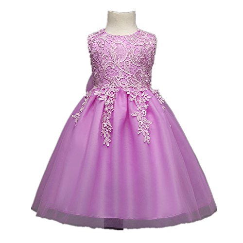Candykids 子供ドレス 女の子 花 ピアノ 発表 会 結婚式 入園式 演奏会 花嫁介添人 卒業式 お嬢様 ドレス (130cm, パープル)