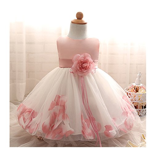 Candykids キッズドレス 花飾り 花びら 子供フォーマル 子供ドレス ワンピース 女の子ドレス ふわふわ ガールズフォーマル お嬢様 出産祝い 発表会 結婚式 入園式 演奏会 おしゃれ (120cm, ピンク)