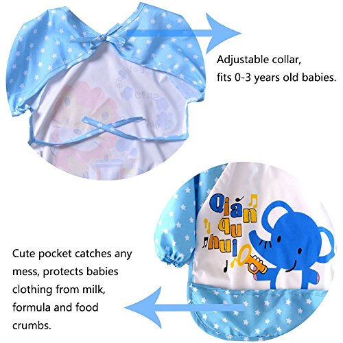 Canis ベビー お食事エプロン 長袖 防水 お絵描き 離乳食 保育園用 対象年齢1~4歳 かわいいデザイン 動物 6色 (ブルーK-どう)