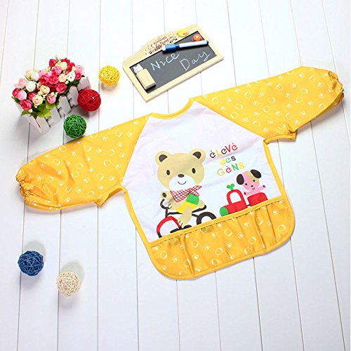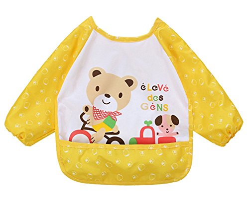 Canis ベビー お食事エプロン 長袖 防水 お絵描き 離乳食 保育園用 対象年齢1~4歳 かわいいデザイン 動物 6色 (黄色くま)