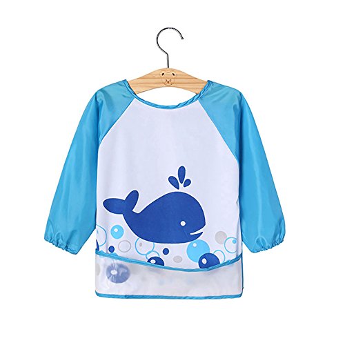 Canisベビー お食事エプロン 長袖 防水 お絵描き 離乳食 保育園用 対象年齢1~4歳 かわいいデザイン 7色 (シロナガス鯨)